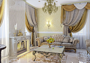 Ампир в интерьере квартиры особенно хорошо смотрится в гостиных, столовых и холлах, где можно сохранить симметрию и архитектурную выразительность.