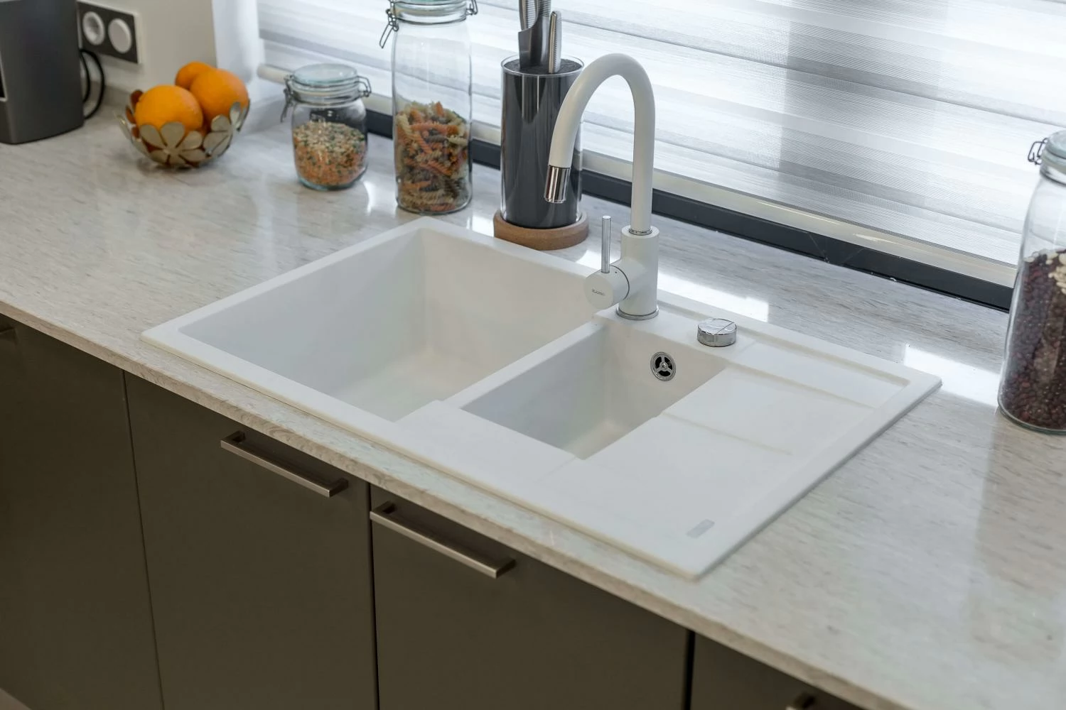 Столешница из камня со встроенной раковиной - прекрасный выбор для кухни в классическом стиле. Конечно, такое решение сложно реализовать, если выбирать натуральный мрамор или гранит. Но современные технологии позволяют использовать кварцевый агломерат, в котором можно воплотить практически любые идеи